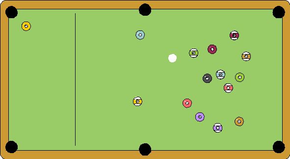 For our purposes, the point is that the balls are scattered across the table. Entropy. The balls are not as readily available for work as they could be if they were racked or lined up in a row. This would not mean that the system has no entropy but rather it has less entropy than it could have. Scattered balls equal high entropy, ordered, line up balls equal relatively less entropy.